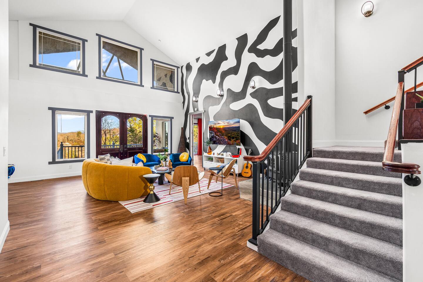 Welcome to the bold and colorful Alpine Artistry Estate by Gatherwell Escapes! Immerse yourself in the breathtaking views of the Blue Ridge Mountains!
